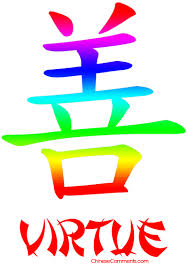 (Top, a bird rushing to its injured comrade; Right, a  chinese symbol for virtue)